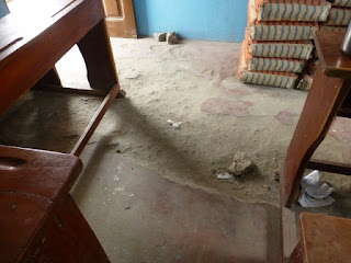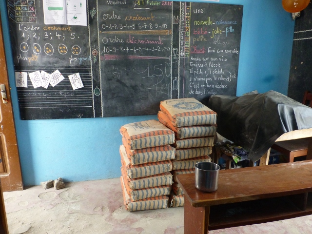 Une salle de classe sert à stocker les sacs de ciment.
