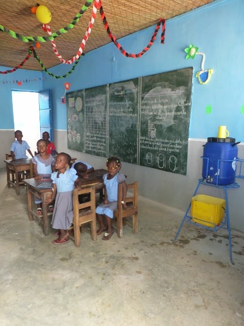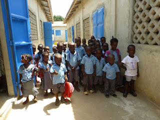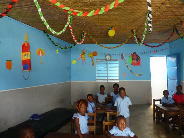 (Certains jours, les élèves ont eu congé, vu que l'accès aux classes était impossible à cause du chantier. Mais il a fallu occuper les élèves de l'extérieur, environ 50)