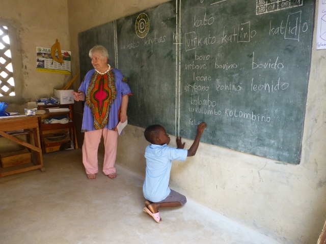 Dekstre Kingslim EDAH, kiu instruos Esperanton regule, unufoje semajne, al du klasoj kun infanoj 10-11-jaraj.