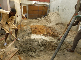 On prépare le béton.